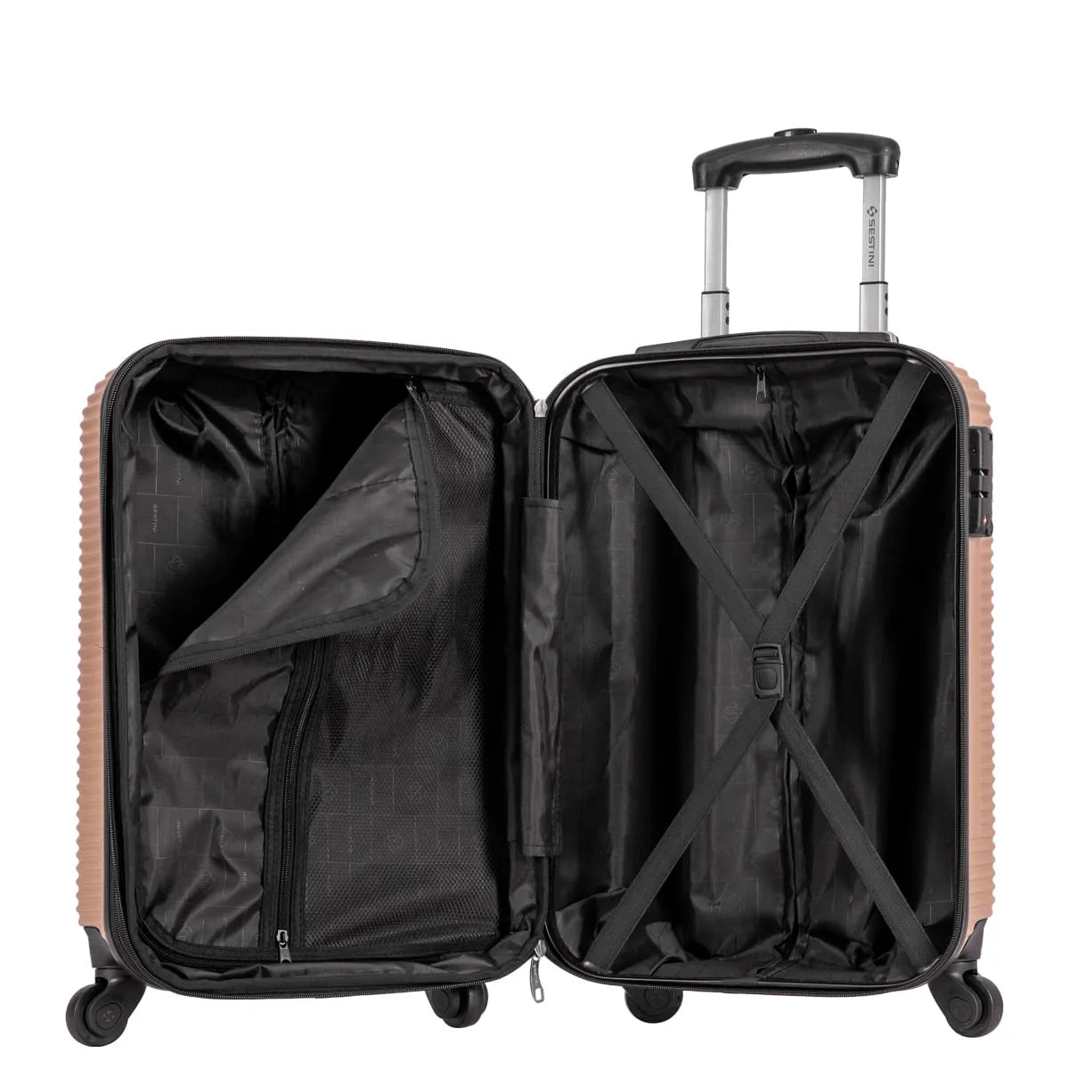 Apresentamos a Mala de Bordo 4 All 5T da Sestini, uma das maiores malas de bordo disponíveis no mercado! Esta mala de bordo mede 55x35x25 cm, sendo ideal para quem busca maximizar o espaço permitido nos embarques combinando inovação com capacidade.